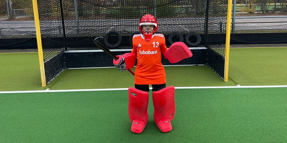 ‘In de herfstvakantie hebben we twee wedstrijden gespeeld bij Kampong in Utrecht tegen andere regioteams. Ik keepte om de beurt een kwart. Het was wel vet, want alle verdedigers snapten hun posities en ze luisterden naar mijn aanwijzingen! Wat wel wennen is, is dat ze allemaal ook heel hard kunnen slaan. Dus ik krijg echt snoeiharde ballen om mijn oren. Ik heb tijdens de selectietrainingen een blessure aan mijn knie opgelopen door zo’n harde bal. Toen moest ik dus met ijs aan de kant blijven zitten. Gelukkig was het de laatste training en hoorde ik daarna dat ik geselecteerd was. Toen was ik zo blij dat mijn knie niet meer zo’n pijn deed!’